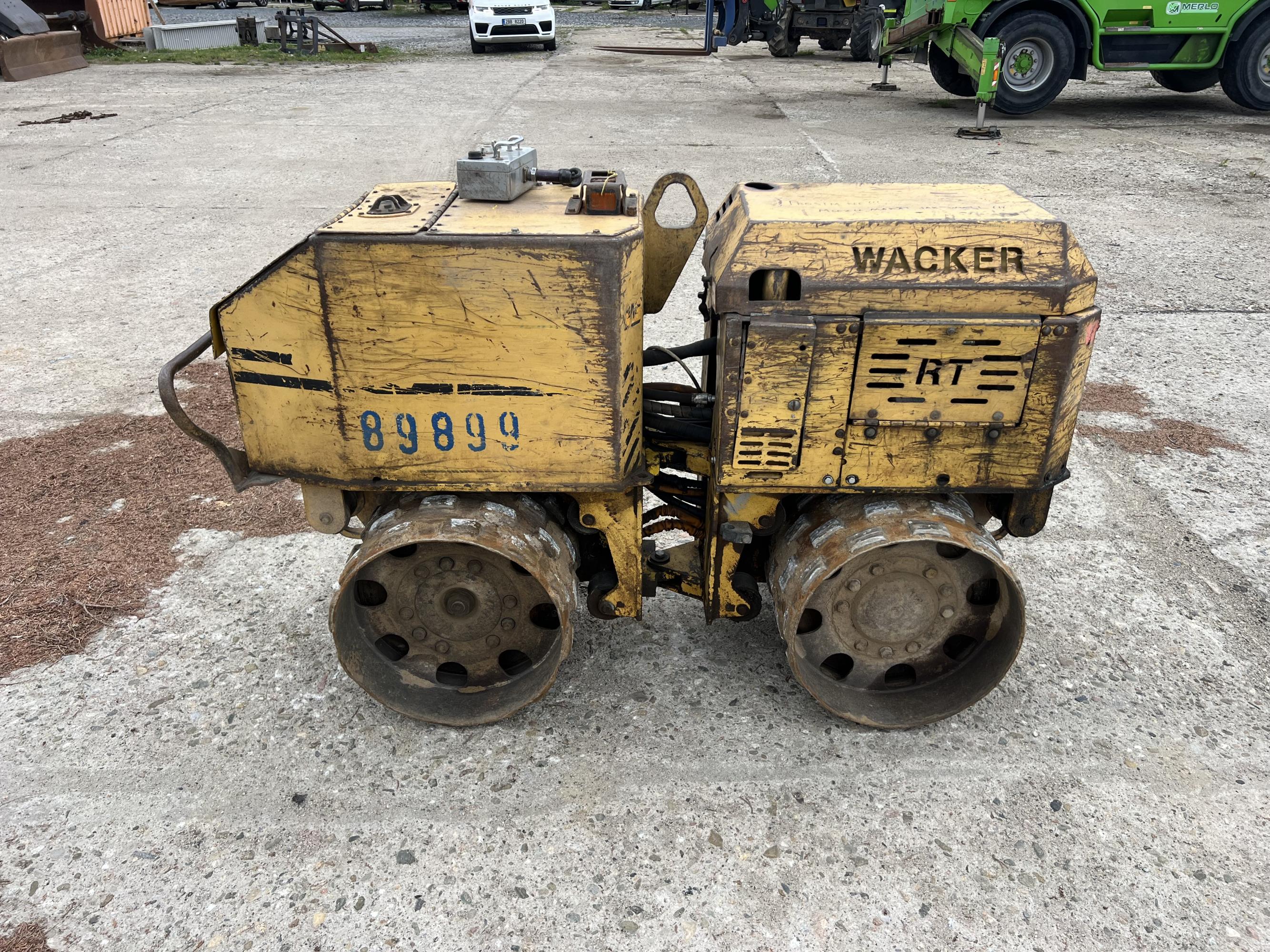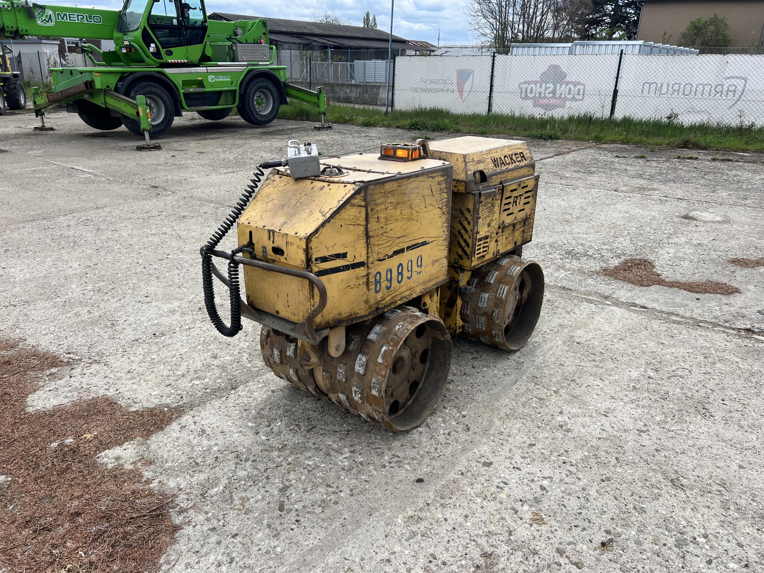 Wacker Neuson RT 820 s dieselovým motorem Lombardini 13,3 kW. Ovládání přes kabel ovladačem, elektronický start, pojezd želva / zajíc, hutnící síla 31/62 kN, hmotnost 1.370 kg, šířka válců 82 cm.